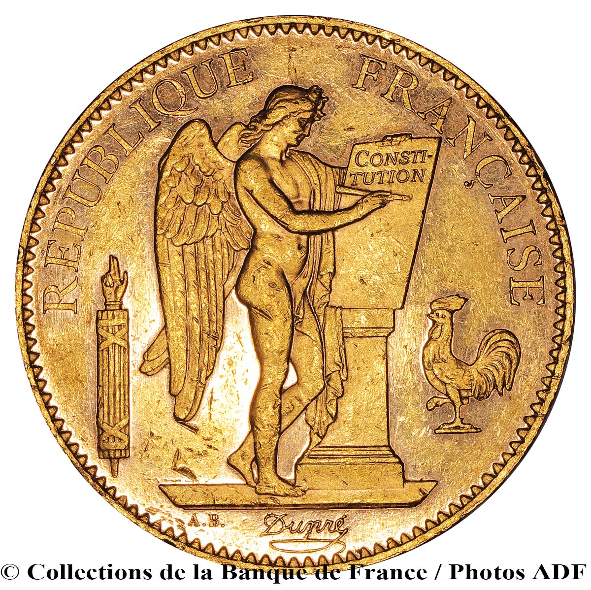 Parmi les grandes raretés de la numismatique moderne française concernant la faciale de 100 Francs figurent dans les premières positions les pièces de 100 Francs Napoléon III 1870 A (frappées à 10 460 exemplaires mais dont la plupart n’ont pas été mises en circulation et ont été refondues) et la 100 Francs Génie 1889 A (cette dernière étant frappée à 100 exemplaires pour le centenaire de la Révolution à l’occasion de l’exposition universelle).