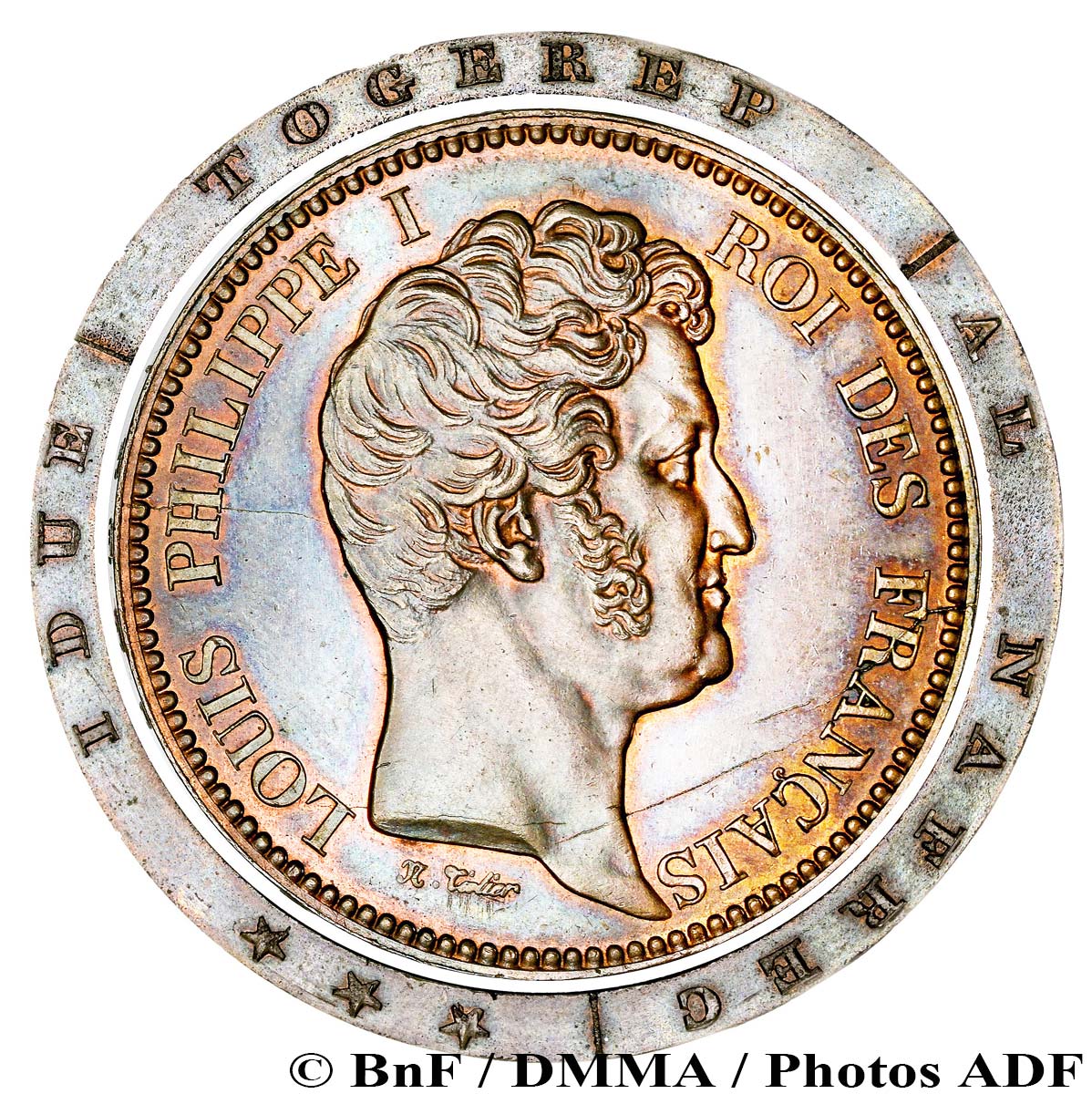Sur un essai de Louis-Philippe on peut lire sur la tranche « *** IDUE TOGEREP AL NAFREC » au lieu de la traditionnelle légende « *** DIEU PROTEGE LA FRANCE ». Que s’est-il donc passé ? Le graveur avait-il bu avant de graver les segments de cette virole ? A-t-il été victime d’un AVC ? Ou y a-t-il un autre motif ? La réponse se trouvera très prochainement dans l’ouvage LE FRANC, LES ESSAIS, LES ARCHIVES LOUIS-PHILIPPE (1830-1848). N’hésitez pas à vous le procurer dès sa sortie prévue en novembre !