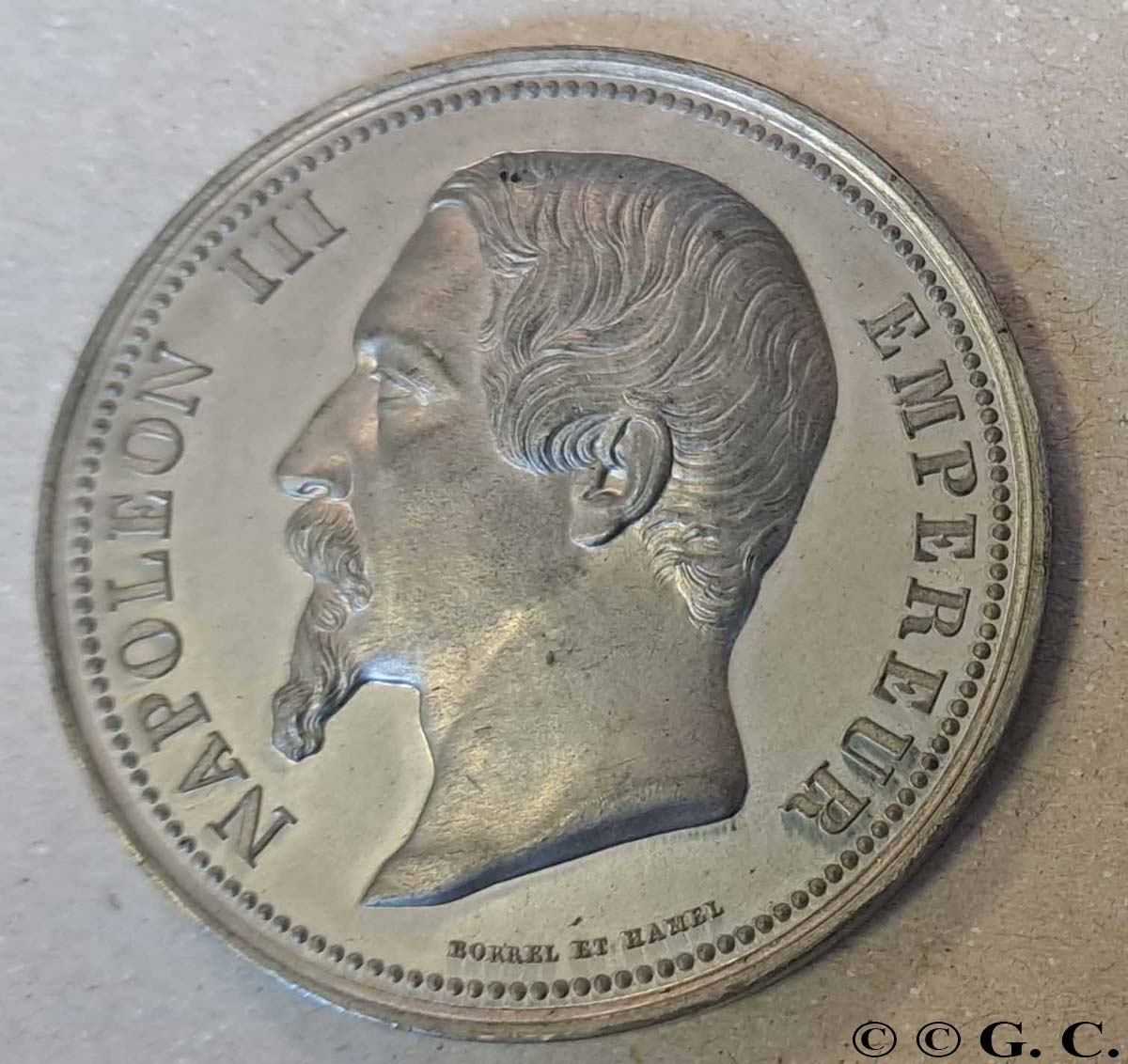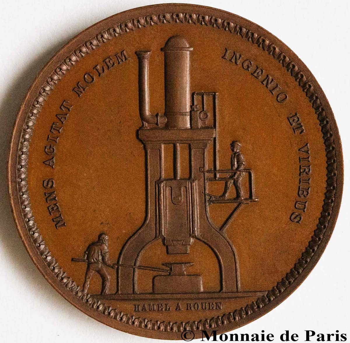 1858-59 est une période charnière : Hamel réalise les médailles de récompense et de souvenir de l’Exposition régionale de Rouen, et le concert des louanges dépasse cette fois les frontières normandes, puisque son travail trouve grâce aux yeux de la Gazette des Beaux-Arts dans son numéro du 1er octobre.