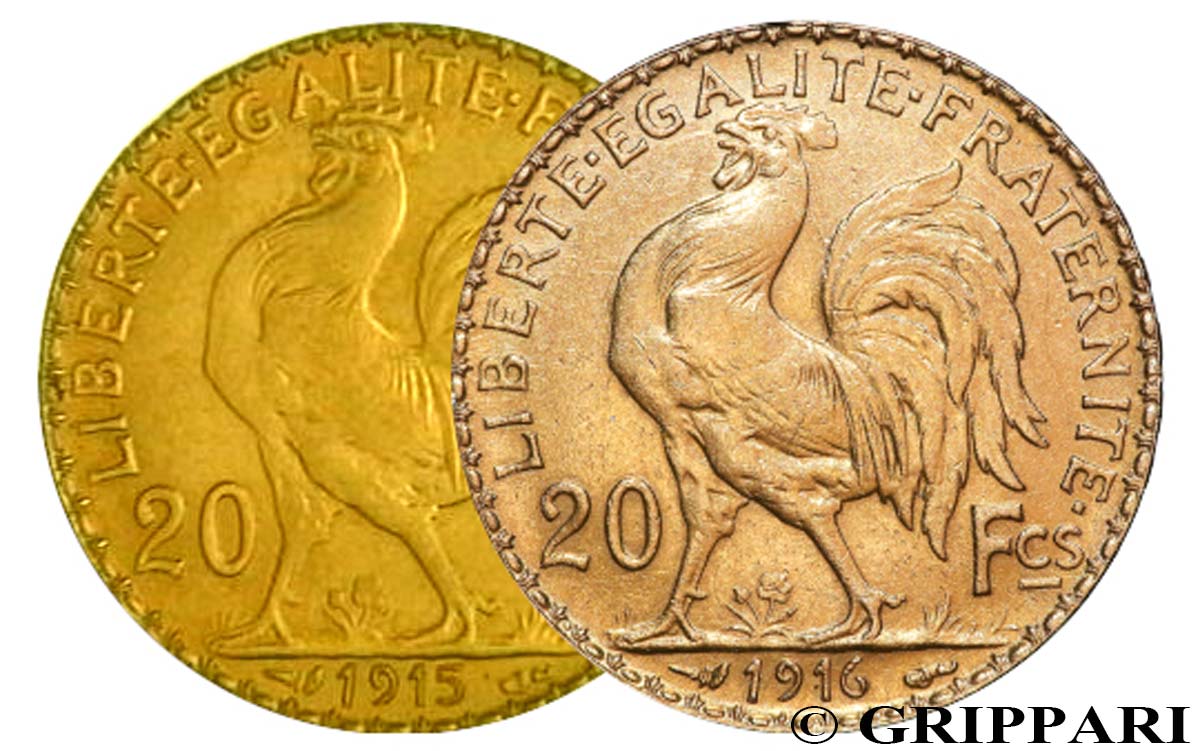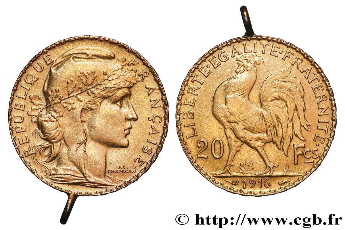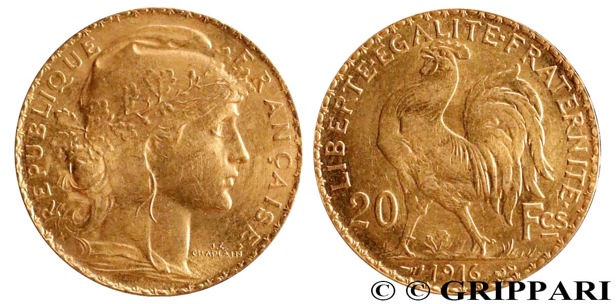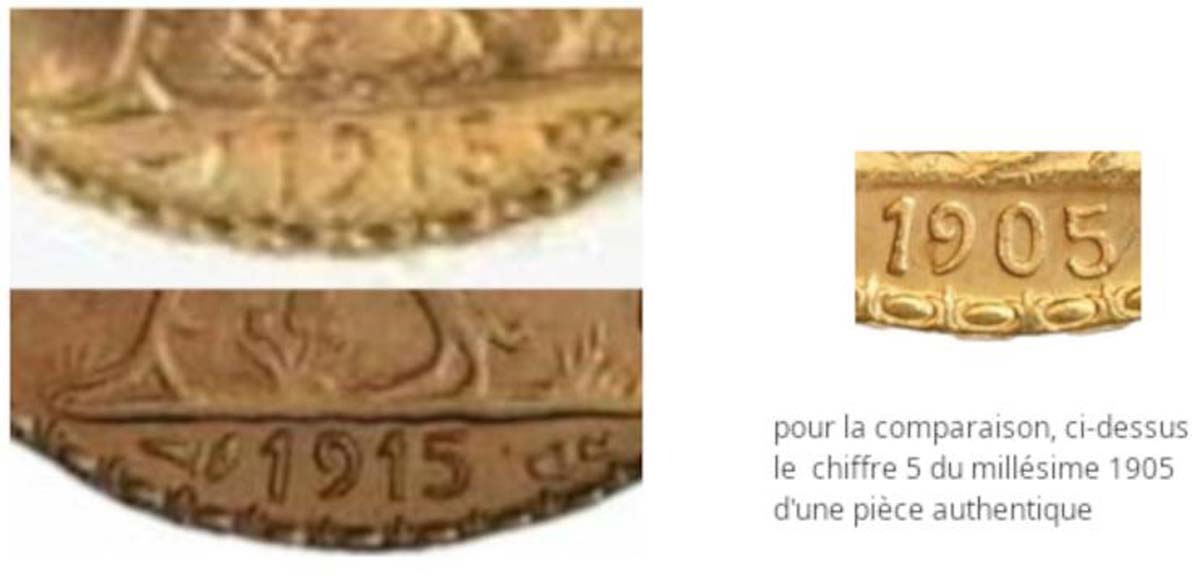 | 20 FRANCS MARIANNE COQ : LES MILLÉSIMES IMPOSSIBLES (1915 ET 1916) | 21/10/2025 Informations INTRODUCTION Les pièces de 20 francs or au type Marianne Coq ont la réputation d’avoir moins intéressé les faussaires que celles d’autres types (comme Génie ou Napoléon III), à l’exception notable : Ces réserves faites, l’existence de Marianne Coq contrefaites (faux d’époque ou faux pour servir) ne fait aucun doute. Elles constituent même un thème de collection prisé de passionnés avertis avec de nombreuses déclinaisons en sous-thèmes parfois surprenants comme ces pièces qui arborent un millésime a priori impossible car postérieur à 1914. Après avoir résumé l’état de nos connaissances à propos de ces contrefaçons anachroniques, nous décrirons plus en détail le cas de deux pièces millésimées 1916 récemment acquises au cours d’une vente aux enchères (voir photo de l’exemplaire n°1 ci-dessous).