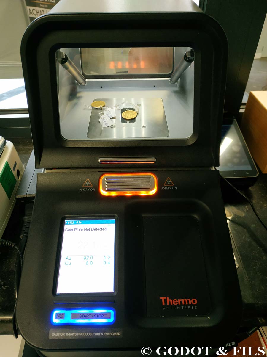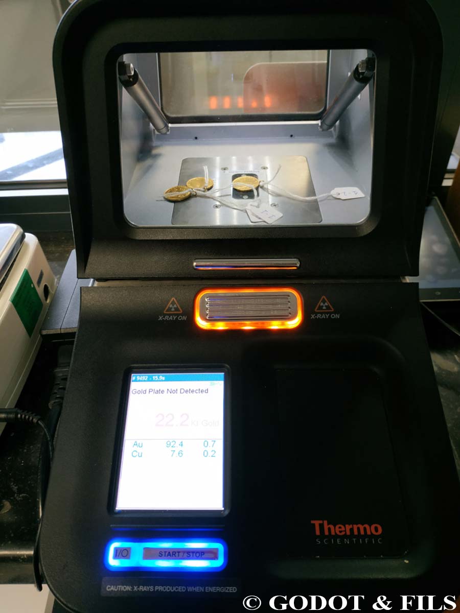 Le diamètre et l’épaisseur des deux pièces sont comparables à ceux du type monétaire authentique. Le poids est supérieur à la normale (6,57 g et 6,53 g) car les petits anneaux soudés ont été laissés en place afin de ne pas risquer d’endommager la tranche des pièces.