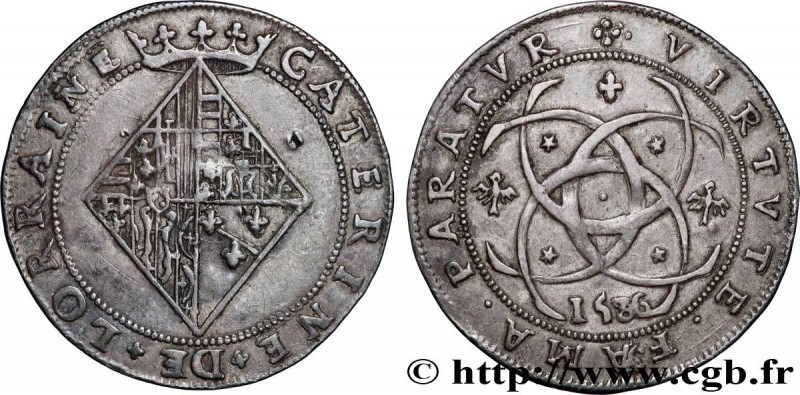 Parmi les ventes actuellement en ligne, nous attirons aussi votre attention sur cette sélection de 128 jetons de Lorraine présentée dans l'Internet Auction Février 2026. Cette vente réunit notamment ce beau jeton en argent pour Catherine de Lorraine (1586), ainsi qu’une intéressante série de jetons en cuivre aux trois alérions de Lorraine, dont un exemplaire au dextrochère daté (15)79.