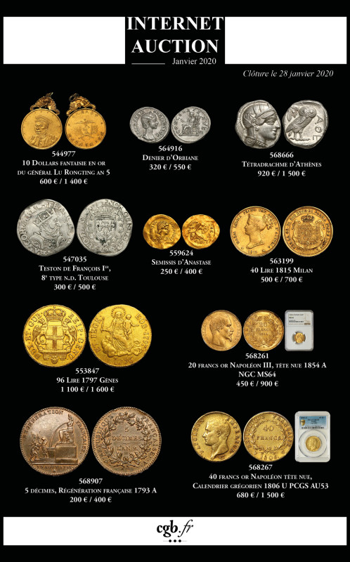 CGB Internet Auction - 28 janvier 2020 : placez vos pré-ordres dès à présent ! | 23/01/2020 Annonces |