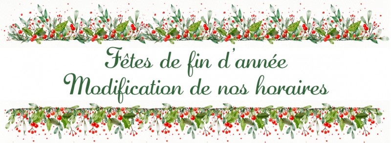 Fêtes de fin d'année - Modification de nos horaires | 18/12/2025 Annonces |