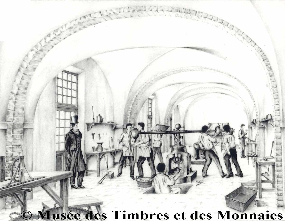 N.B. Les photos sont extraites de la brochure d’information et des archives du musée des Timbres et des Monnaies (MTM), ainsi que du Gadoury rouge 2017 pour le balancier de Droz.
